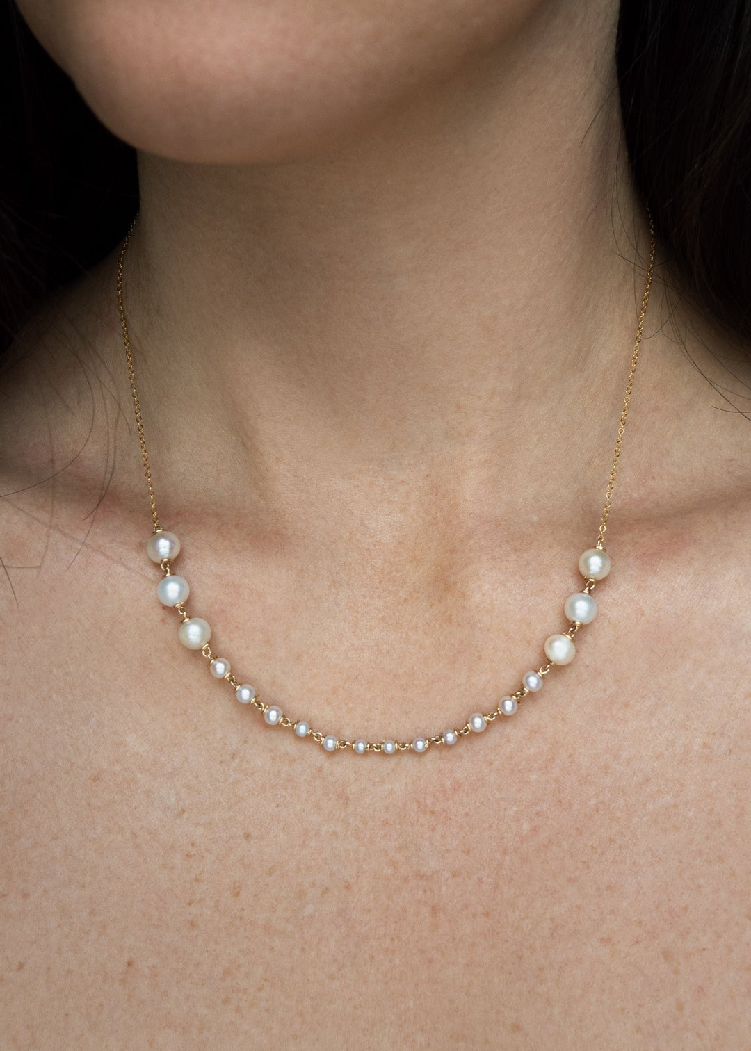 Gold-filled & sterling silver necklace with two small pearls